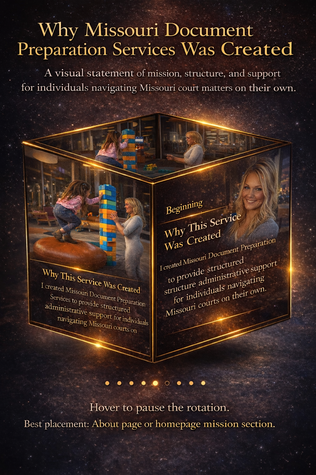 I created Missouri Document Preparation Services to provide structured administrative support for individuals navigating Missouri courts on their own.