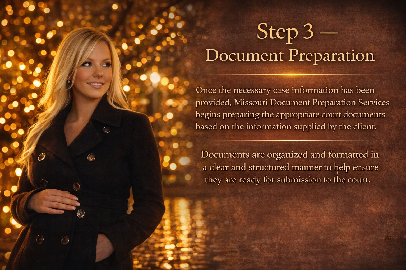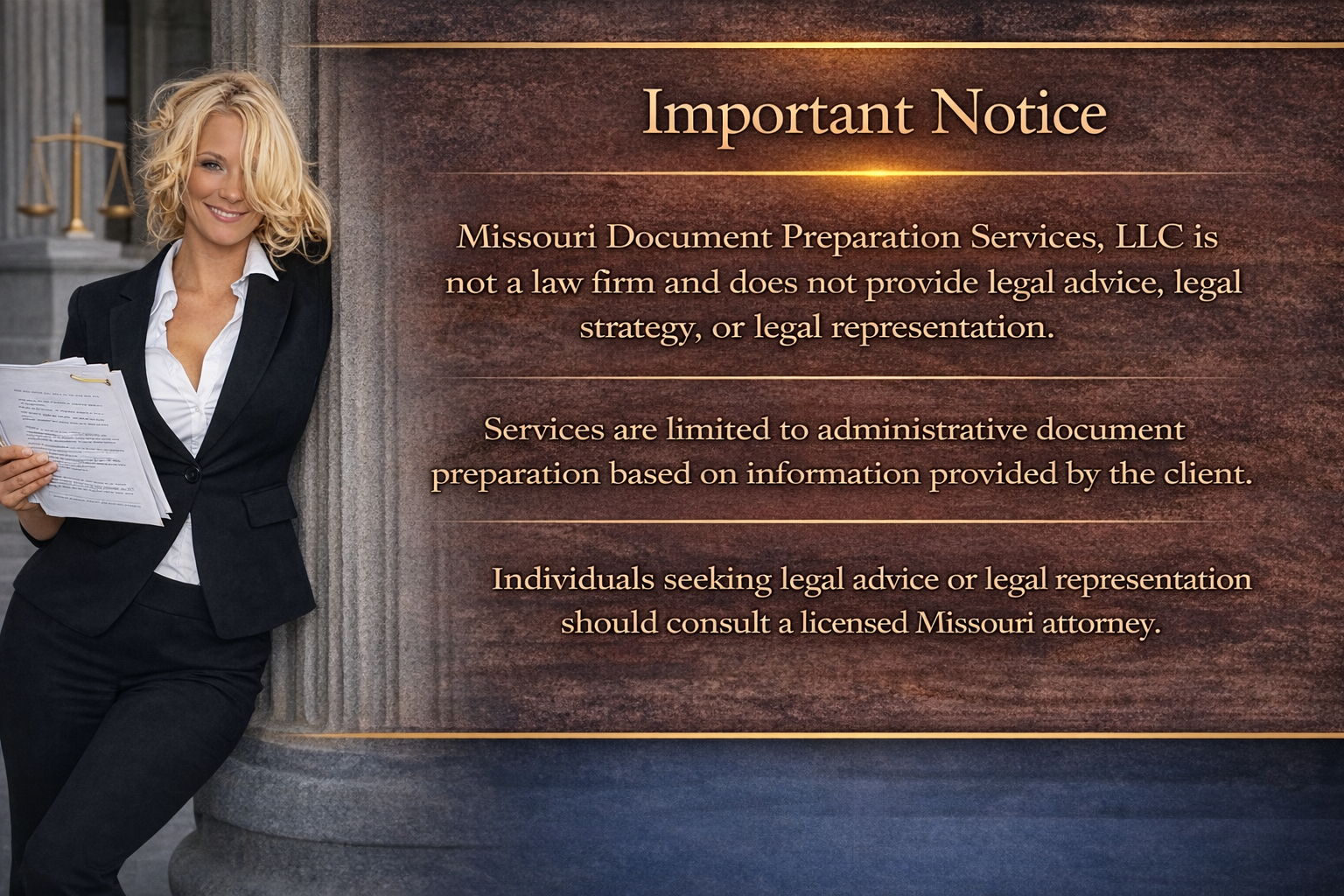 IntroductionMissouri Document Preparation Services provides administrative document preparation assistance for individuals who are representing themselves in court. Our process is designed to help clients organize their information and prepare court filings in a clear and structured format.All documents are prepared based solely on information provided by the client.Ready to Begin Preparing Your Court Documents?
